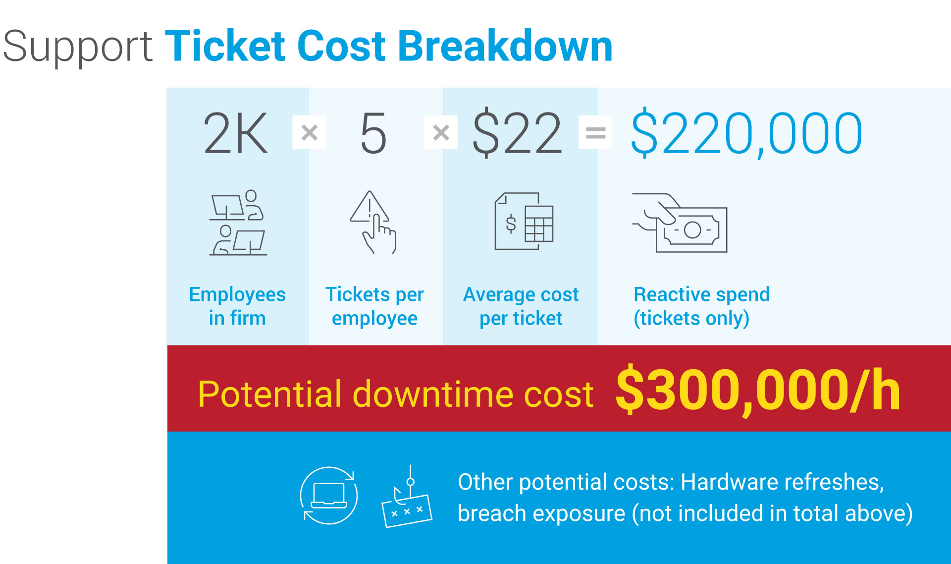 The real one cost of service in EUC is based on four pillars: support and tickets, capital expenditure / hardware renewal, downtime, and cyber risk. Ignoring any one of these throws the whole off balance—especially as modern ransomware groups leverage social engineering on help desks to reset multi-factor authentication (MFA).